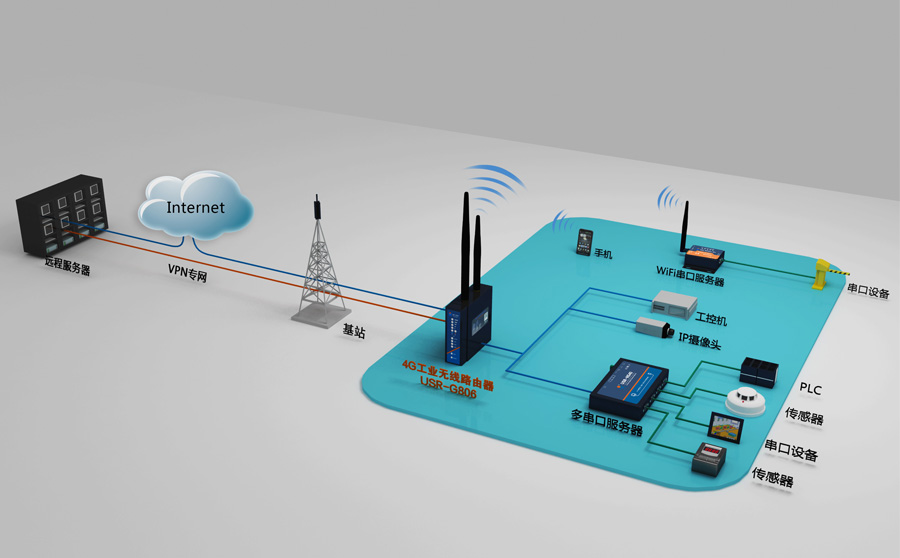 當某項目中,需要用到以太網(wǎng)、蜂窩網(wǎng)絡(luò)以及WIFI聯(lián)網(wǎng)的多種方式,可以考慮路由器+DTU或工業(yè)路由器+串口服務(wù)器的搭配方式。
