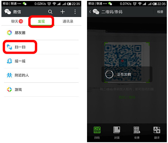 登陸微信,通過“發(fā)現(xiàn) -> 掃一掃”,掃描公司微信二維碼;