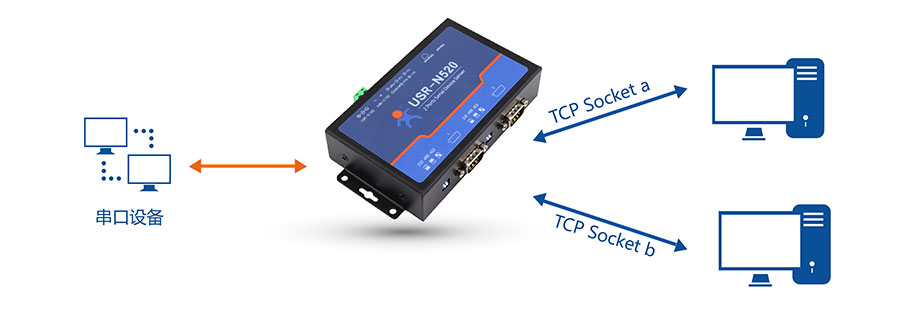 串口服務器同時監(jiān)聽端口,將所有接收的數(shù)據(jù)轉(zhuǎn)發(fā)給串口設備。