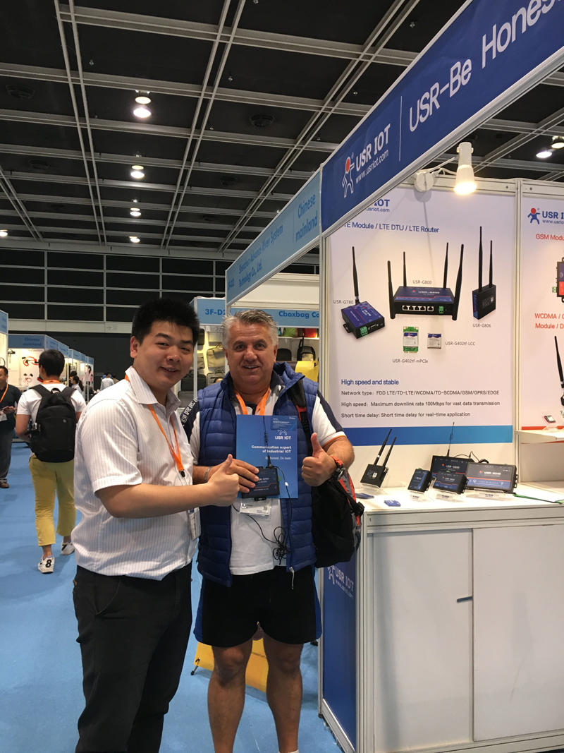 香港電子展會(huì)上,有人物聯(lián)網(wǎng)不僅攜帶重量級(jí)的3G/4G工業(yè)路由器、DTU等,還帶著最新產(chǎn)品——USR-G781。持續(xù)關(guān)注有人物聯(lián)網(wǎng)公眾賬號(hào)的朋友們都知道,G781是一款工業(yè)級(jí)帶網(wǎng)口的4G DTU。也就是說(shuō),如果PLC正在通過(guò)G781的串口采集數(shù)據(jù)時(shí),還可以將G781的網(wǎng)口連接網(wǎng)絡(luò)工控機(jī),直接勘察現(xiàn)場(chǎng)情況。串口和雙網(wǎng)口的自由選擇,是非常受工控項(xiàng)目青睞的產(chǎn)品,引起展臺(tái)上顧客的極大興趣。