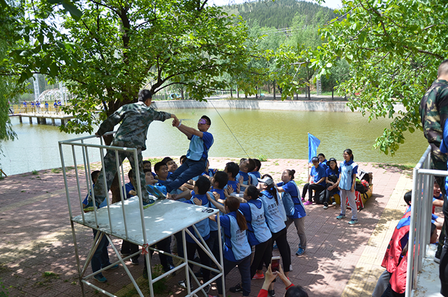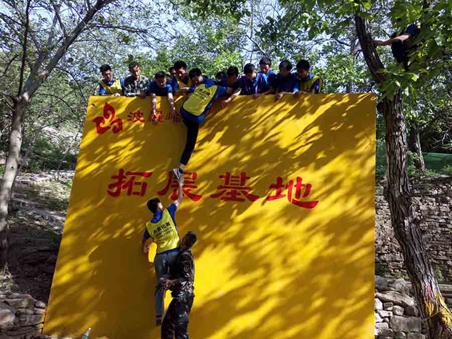 要求全隊(duì)所有成員在規(guī)定的時間內(nèi)翻越一面高4.26米的光滑墻面,在此過程中,大家不能借助任何外界的工具,所能用的資源只有每個人的身體。