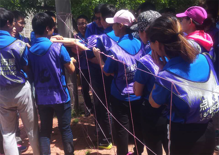 每位隊(duì)員都需要穿越一張與地面垂直的“電網(wǎng)”(繩網(wǎng)),網(wǎng)上的一個洞就是一條生路,但每條生路都只能使用一次。身體的任何部分,都不許碰到繩子的邊緣,碰到即為“觸電”。