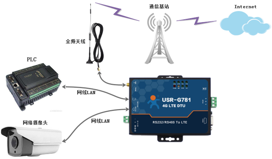 這種4G DTU組網(wǎng)方式適合于無法布設(shè)網(wǎng)線連接廣域網(wǎng)的場合,由于僅使用4G網(wǎng)絡(luò),所以購買4G網(wǎng)絡(luò)套餐時請適當(dāng)增加流量防止流量超出,造成不必要的后期維護(hù)。