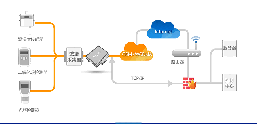 在智能農(nóng)業(yè)企業(yè)中,3G DTU可以將農(nóng)業(yè)大棚里的各類(lèi)傳感器數(shù)據(jù)進(jìn)行采集,并傳輸?shù)竭h(yuǎn)程服務(wù)器及 控制中心,實(shí)現(xiàn)數(shù)據(jù)實(shí)時(shí)監(jiān)測(cè),促進(jìn)農(nóng)業(yè)物聯(lián)網(wǎng)的發(fā)展。