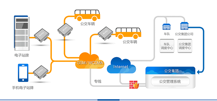 公交集團(tuán)采購(gòu)大量3G DTU應(yīng)用到公交汽車(chē)中,將公交汽車(chē)的各類(lèi)信息(包括位置信息、IC卡數(shù)據(jù)等) 實(shí)時(shí)發(fā)送到各類(lèi)平臺(tái)上,方便用戶(hù)乘車(chē),實(shí)現(xiàn)智慧城市。