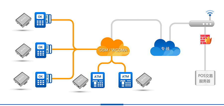 在零售行業(yè)中,無(wú)線(xiàn)POS機(jī)和ATM機(jī)使用3G DTU實(shí)現(xiàn)遠(yuǎn)程聯(lián)網(wǎng),實(shí)現(xiàn)安全支付,簡(jiǎn)單便利。