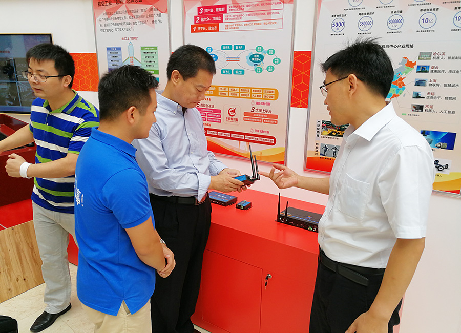 王總身臨一線,親自為各位參觀領(lǐng)導(dǎo)仔細(xì)講解產(chǎn)品用途和技術(shù)背景。中航工業(yè)的領(lǐng)導(dǎo)拿起一款4G工業(yè)路由器USR-G806表現(xiàn)出濃厚興趣,王總介紹道:“這款工業(yè)路由器是利用運(yùn)營(yíng)商的3G/4G網(wǎng)絡(luò),實(shí)現(xiàn)工業(yè)設(shè)備戶外高速穩(wěn)定的網(wǎng)絡(luò)部署,在ATM機(jī)、自動(dòng)快遞柜、自動(dòng)售貨機(jī)、廣告屏等領(lǐng)域有著非常廣泛的應(yīng)用。