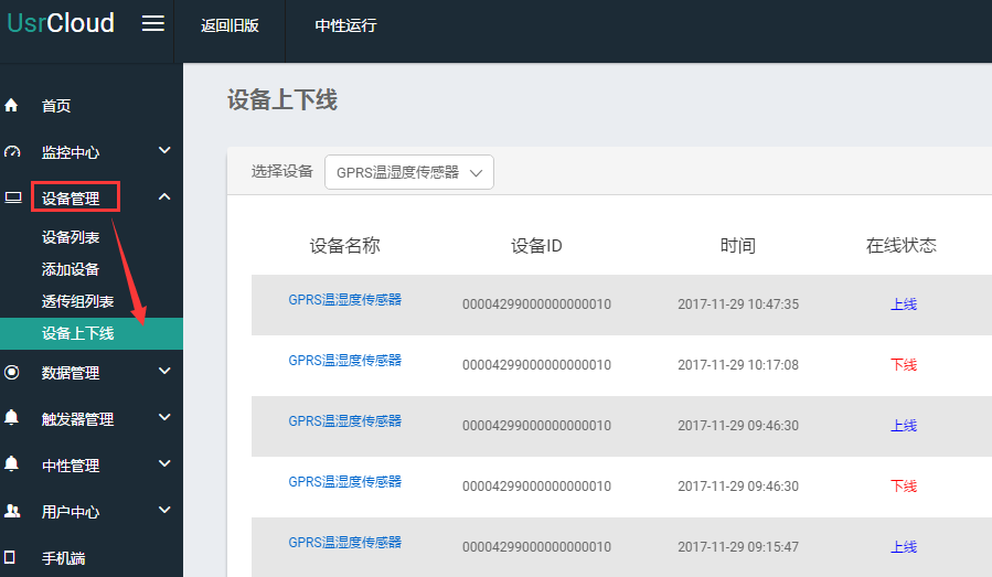 打開有人透傳云http://cloud.usr.cn/,選擇“體驗(yàn)賬號(hào)”進(jìn)入(若有透傳云賬號(hào)的用戶可直接登錄自己的透傳云賬號(hào))??刹榭匆韵滦略龉δ堋R部梢渣c(diǎn)擊透傳云版本更新地址http://cloud.usr.cn/update_log.html,查看透傳云版本更新詳情。