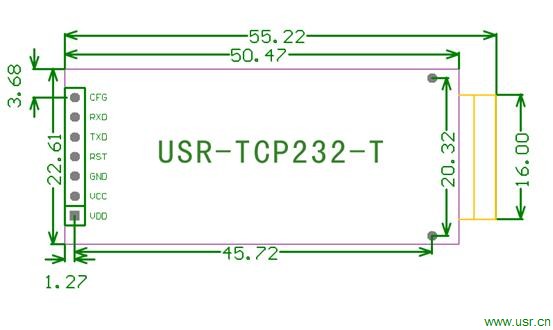 請一定注意 USR-TCP232-T模塊的插針引腳是TTL電平,不要和232電平的設(shè)備進(jìn)行直接連接,否則會(huì)燒壞模塊。