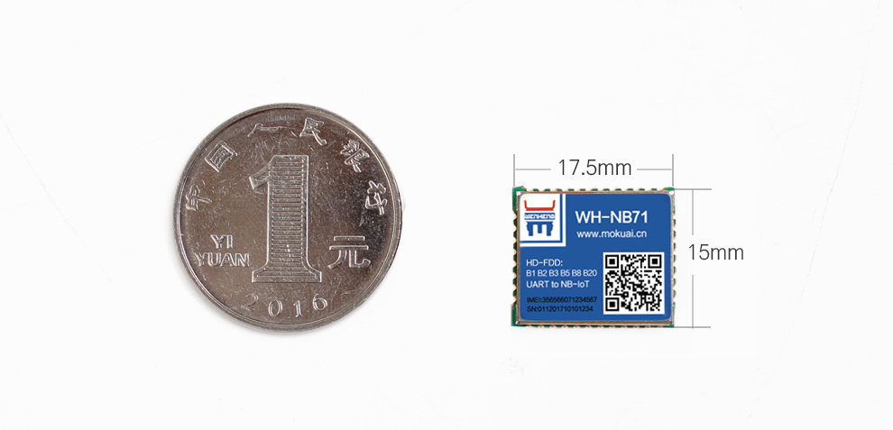 有些眼尖的童鞋可能發(fā)現(xiàn)了,它跟今天微信頭條的WH-NB73啥關(guān)系啊?沒錯(cuò),他們是一家子,都是有人物聯(lián)網(wǎng)旗下模塊子公司上海穩(wěn)恒科技的模組品牌。這是一款高性能、低功耗的NB-IoT通訊模組,支持B1/B3/B5/B8/B20頻段,超小尺寸封裝,全網(wǎng)通、全球范圍通用;支持CoAP透傳功能,支持TCP/UDP;可接入透傳云、電信云等云平臺,方便用戶設(shè)備更好傳輸。