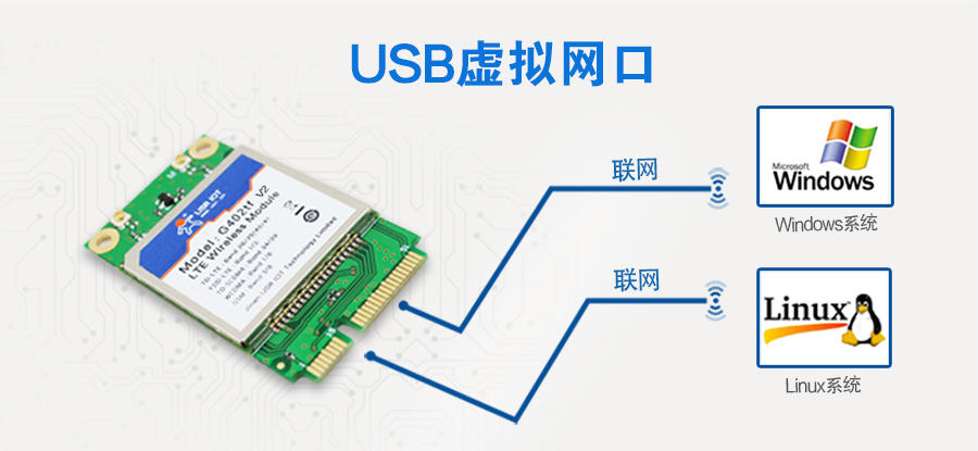 4G模塊G402tf將數(shù)據(jù)通過USB接口轉(zhuǎn)換為4G無線網(wǎng)絡進行傳輸,也可以做4G上網(wǎng)卡使用(暫不支持語音功能)。