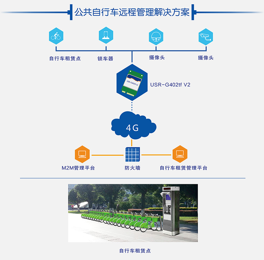 針對城市公共自行車分布分散,維修安全等問題,采用4G模塊實現(xiàn)租賃點實時聯(lián)網(wǎng),對自行車樁位狀態(tài)和存/取車信息實時傳輸,提升了自行車租賃點規(guī)模與時效管理,提高服務質(zhì)量。