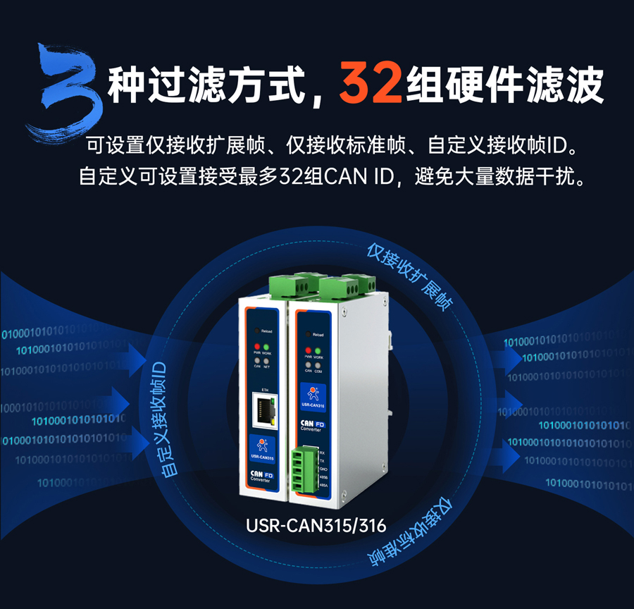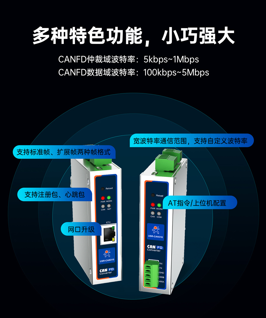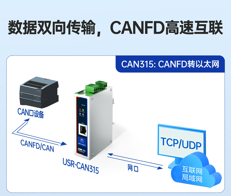 支持雙向轉(zhuǎn)換、僅網(wǎng)口轉(zhuǎn)CAN、僅CAN轉(zhuǎn)網(wǎng)口