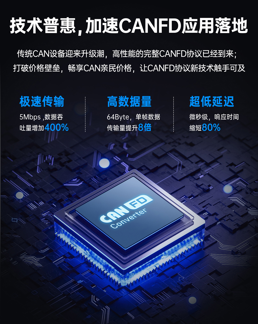 1路CAN口,支持CANFD,兼容CAN 2.0A/2.0B