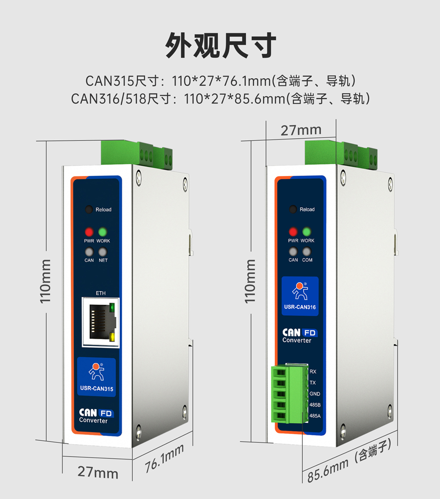 CAN316/518:110*27*85.6mm